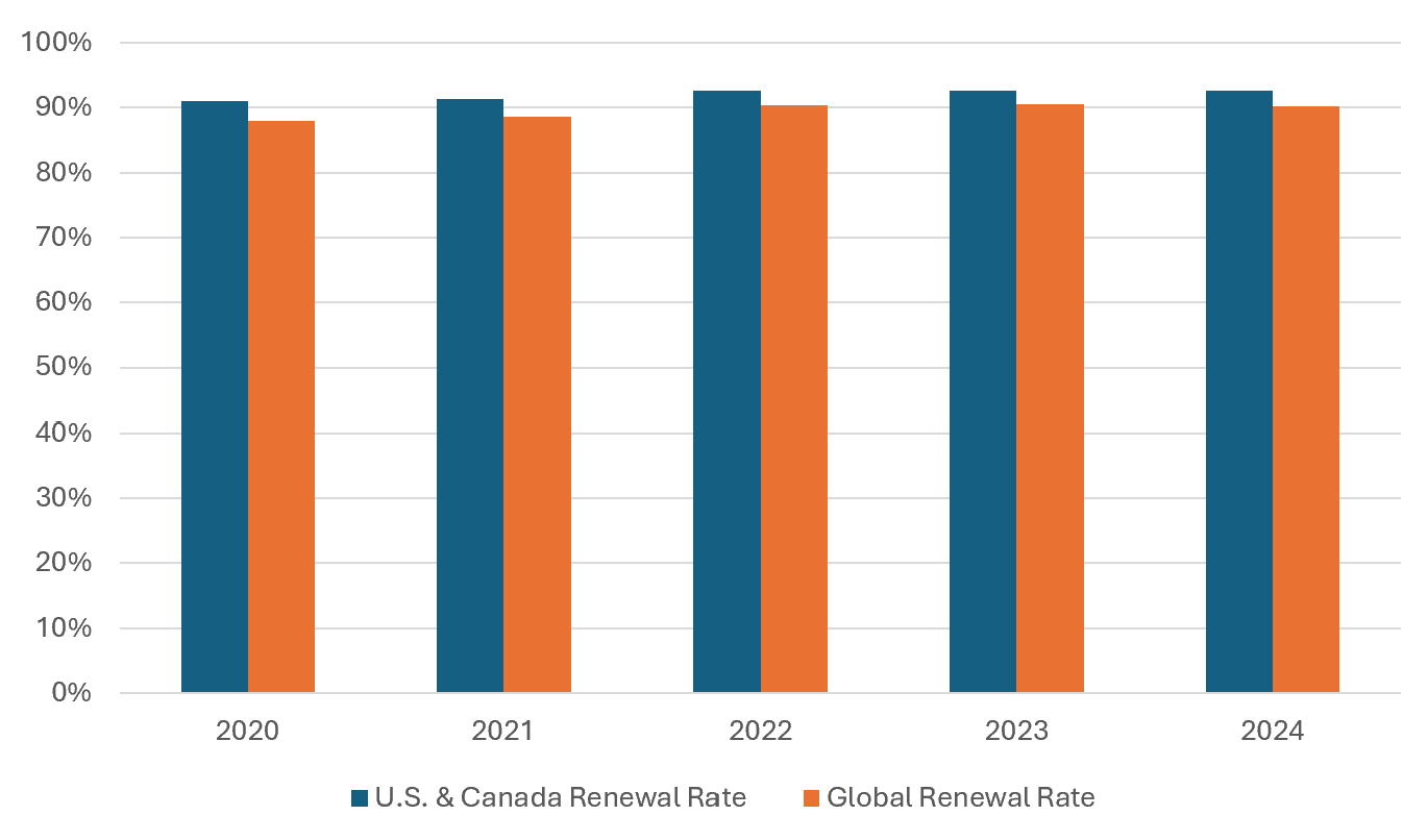 Figure 2. Costco Membership Renewal Rates, 2020-2024
