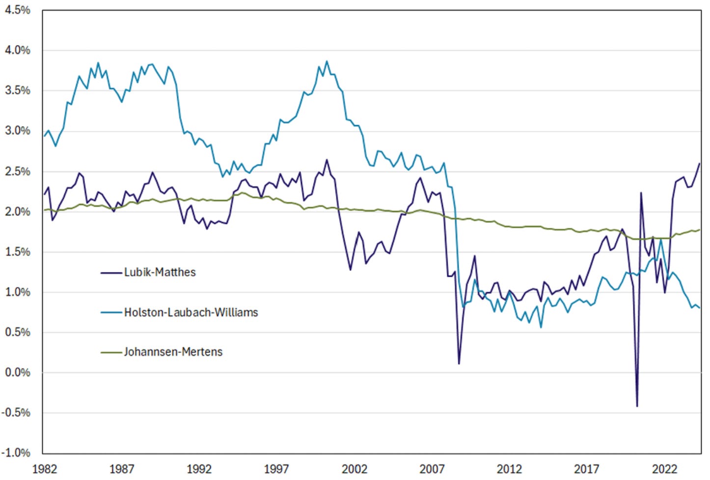 The disagreement between models and their variance over time makes it difficult to employ them with any confidence in practice. Indeed, even John C. Williams, President of the New York Fed and the “Williams” in Laubach and Williams (2003) and Holston, Laubach, and Williams (2023), cautions against taking the estimates derived from these models too seriously: